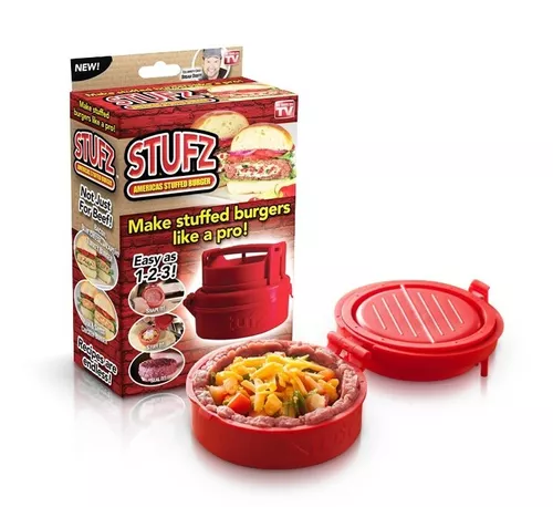Con la magia del molde para hamburguesas Stufz ™, ahora puede disfrutar de posibilidades ilimitadas en la elaboración de la forma en que asa una hamburguesa! puedes elaborar una hamburguesa simple o rellena, Simplemente use la máquina para hacer hamburguesas para crear espacio en el medio para colocar los ingredientes para rellenar y luego sellarlo y asarlo.